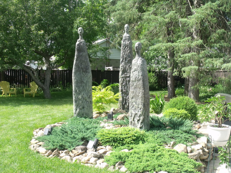 Upon entering the gates of Machal Gardens, guests come upon three stone figures. When a large and cascading willow tree had to be removed from the property two years ago, Hall commissioned Spencerville sculptor Rob Turnbull to create a group of sculptures to reside in the spot, five feet across, left by the large tree. Named 'the Spirit of the Tree', the figures watch over the gardens and pay homage to their predecessor.