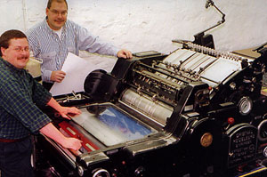 ![]() Brent Boyd, left, and Ron Kleinlagel with the Heidelburg press. St. Lawrence Printing Co. Ltd., established 1890 as The Prescott Journal, is one of Prescott's oldest continuing businesses, and one of the largest printing companies in Leeds and Grenville counties. We take great pride in producing high quality printed products, ranging from the simplest single-colour business card to the most complex process-colour brochure. SLP also offers the best the area has to offer in in-house graphic design and layout services, scanning, film output and more. Just ask! We're here to help. We would appreciate the opportunity to quote on your printing requirements. Please call Ron Kleinlagel at 925-4265 from 8am to 4:30pm, Monday to Friday. He can advise you on paper selection, cost, timing and answer any questions you may have about the offset printing process.